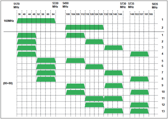 자 간단하게 설명하면 채널 36과 100 외에는 160Mhz 대역폭이 사용 불가능하다