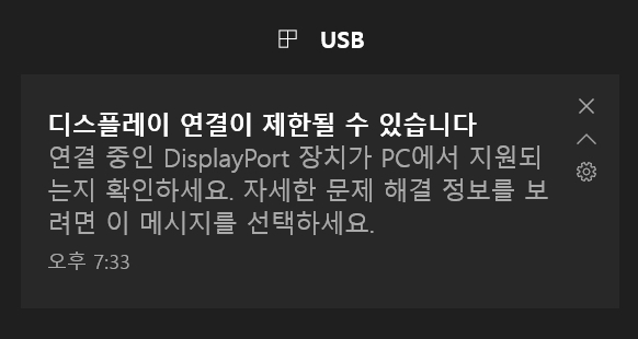 아마 사용이 안되지 않을까 싶기도 하다 노트북에 있는 C포트에서는 저런 메시지를 본적이 없었으니깐...