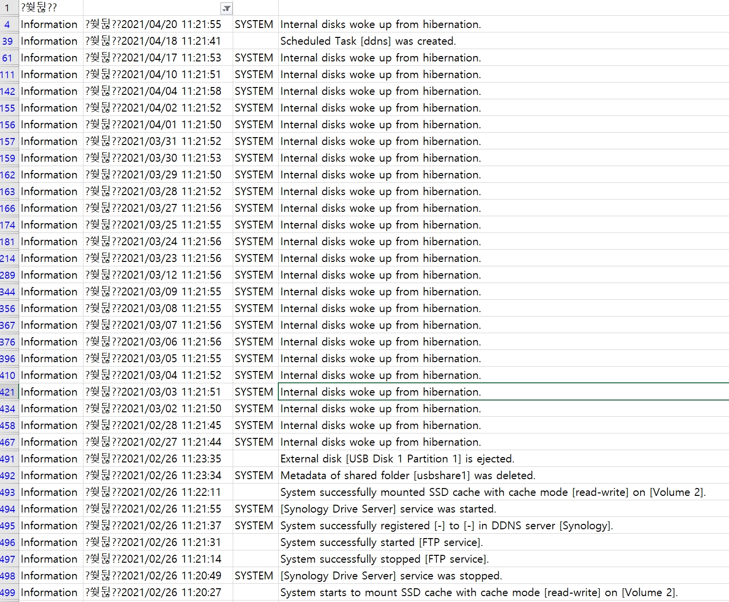 시놀로지 NAS 절전모드 해제 원인 찾기 2021.04.20 본문