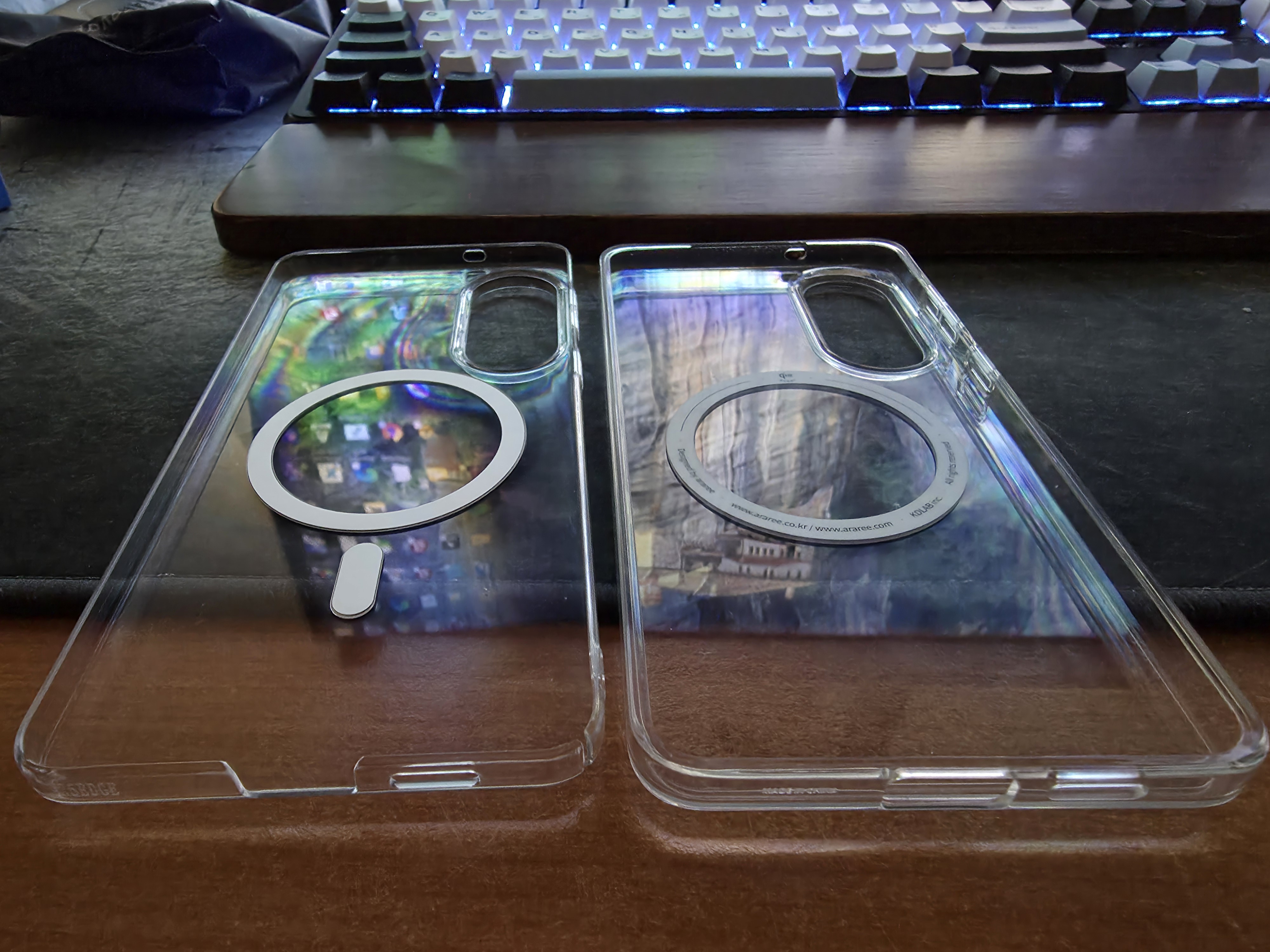 그냥 무난한 케이스 PC와 TPU를 섞어서 측면부는 젤리 후면부는 단단한 PC 재질의 흔한 변색 덜 되는 투명 케이스 이다.