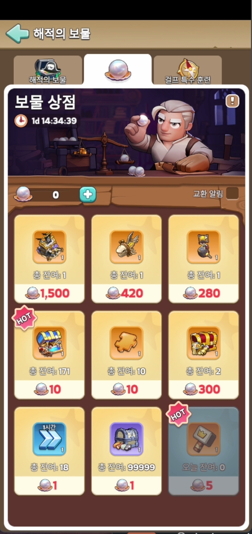 장비 강화 망치는 1일 5개 구매 제한